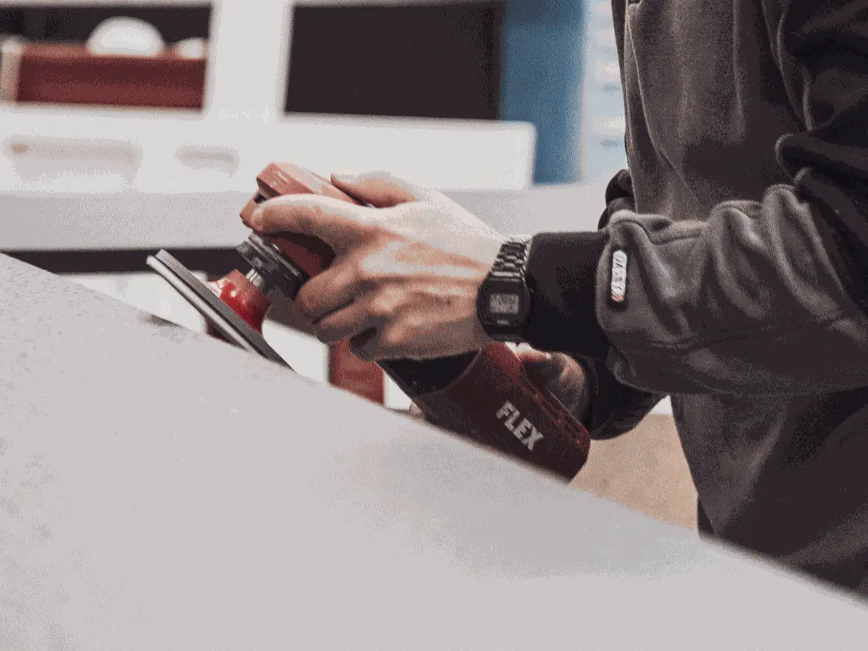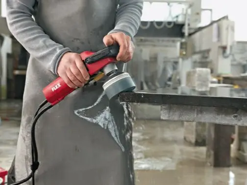Een robuuste haakse slijper gemaakt voor droog polijsten met allerhande diamant polijstpads.